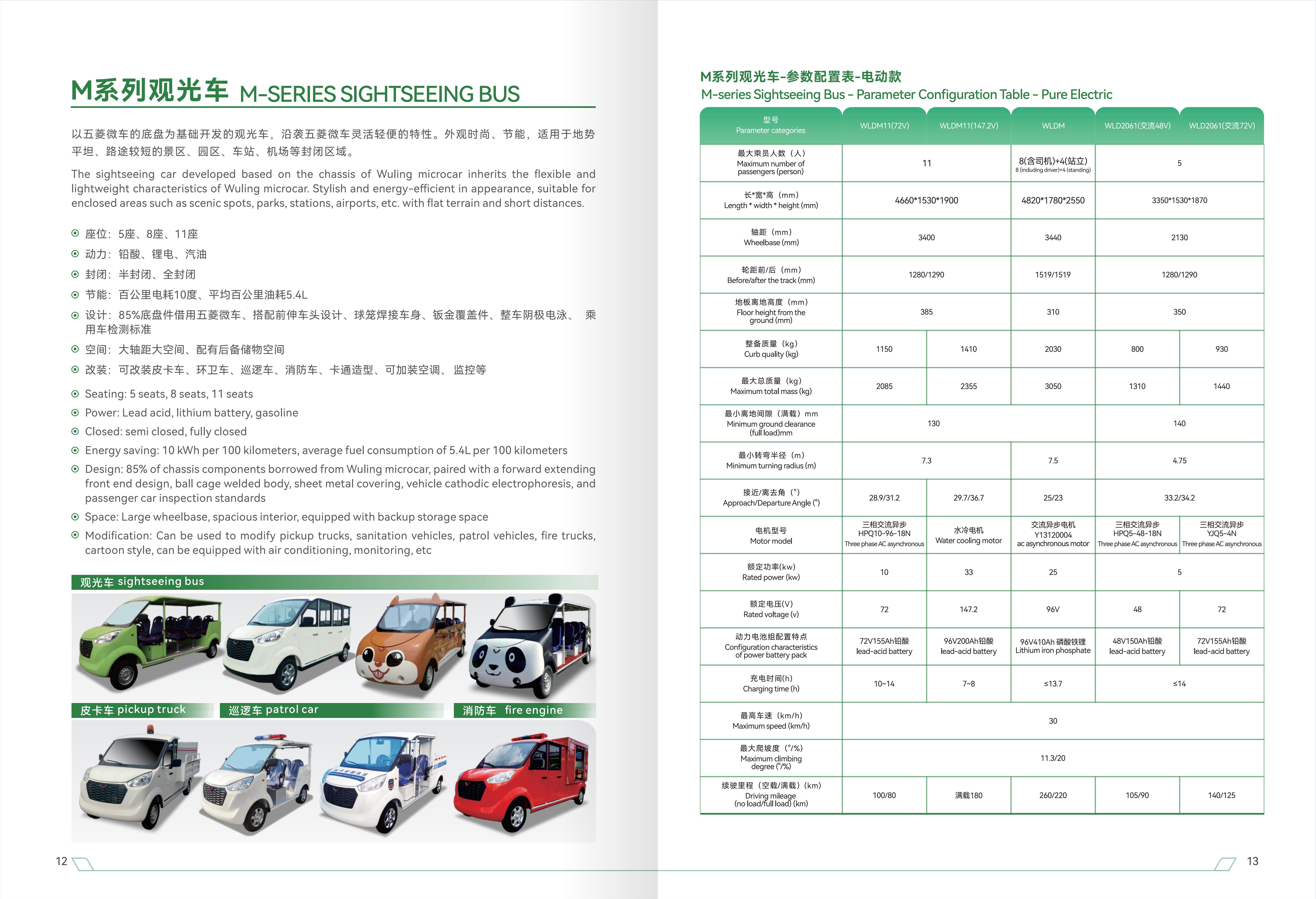 M系列观光车是以五菱微车的底盘为基础开发的观光车,沿袭五菱微车灵活轻便的特性。外观时尚、节能,适用于地势平坦、路途较短的景区、园区、车站、机场等封闭区域。